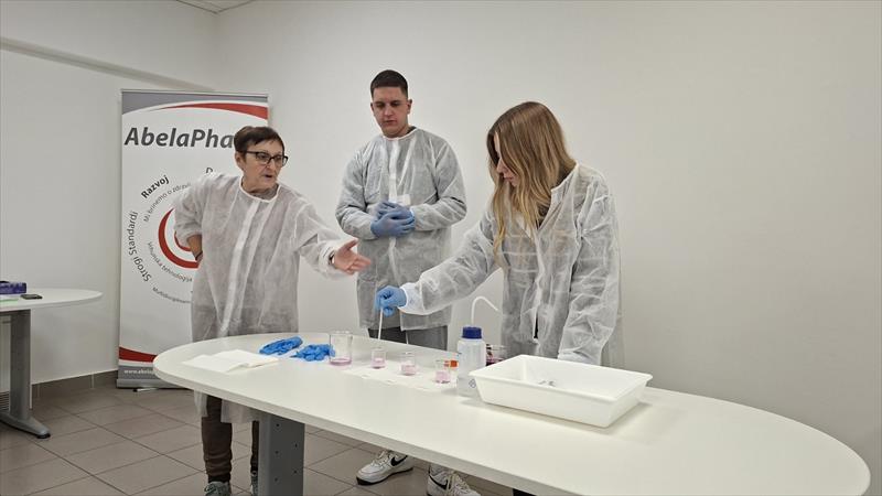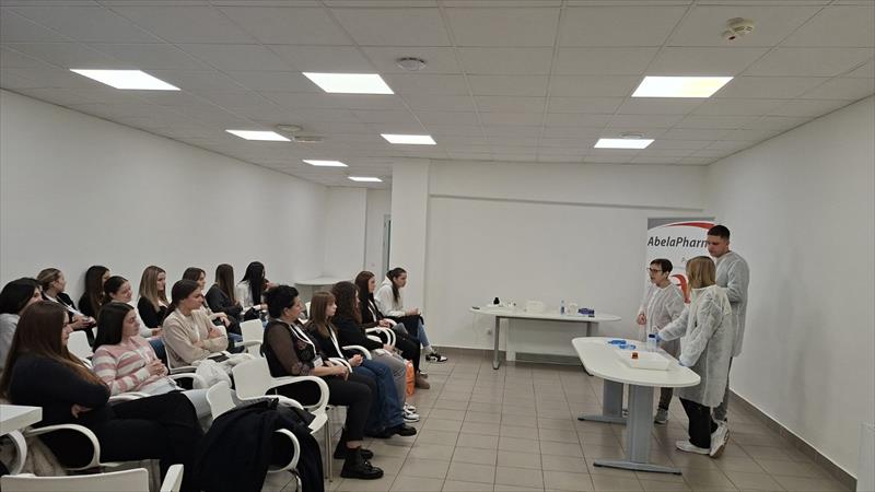 15. фебруар 2026 ПОСЕТА ABELA PHARM Дана 12.2.2026. године, ученици Медицинске школе, смер фармацеутски техничар, одељење Ф 4/1, у пратњи наставника Драгане Вујић и Ане Богосављевић, посетили су фармацеутску компанију Abela Pharm. Полазак је био планиран у 8:15 часова, међутим, због мањег кашњења проузрокованог процедуром контроле аутобуса од стране саобраћајне полиције, кренули смо око 9:30 часова. Иако је то утицало на скраћење дела планираног програма, сама посета је протекла изузетно успешно. Посебно истичемо да је компанија Abela Pharm обезбедила аутобус за превоз ученика и професора, како у одласку тако и у повратку, чиме је у великој мери допринела успешној организацији ове посете и показала висок ниво професионалности и бриге за госте. По доласку у компанију, дочекани смо срдачно и професионално од стране домаћина. Посета је започела презентацијом о компанији Abela Pharm, током које су ученици имали прилику да се упознају са историјатом фирме, организацијом рада, производним програмом и значајем који ова компанија има у фармацеутској индустрији. Након презентације уследио је обилазак производног погона. Ученици су имали прилику да виде пут супстанци од уласка у фабрику до процеса производње готовог производа. Посебно је било интересантно видети како капсуле излазе из машине, као и начин њиховог паковања у a-TECH паковање. Овај део посете био је изузетно значајан јер је омогућио ученицима да теоријска знања повежу са практичном применом у реалном производном окружењу. На жалост, због почетног кашњења нисмо стигли да обиђемо сектор контроле квалитета, што је било предвиђено планом посете. По завршетку обиласка, вратили смо се у салу за презентације где нас је сачекало изузетно лепо послужење. Посету смо заокружили занимљивим експериментом који је извела хемичарка компаније, демонстрирајући деловање витамина C. Овај експеримент је био посебно интересантан ученицима и представљао је леп и едукативан завршетак програма. Такође, похваљујемо ученике одељења Ф 4/1 који су током читаве посете били изузетно дисциплиновани, културни и заинтересовани. Активно су учествовали у разговору, постављали питања и показали завидно знање, одговарајући тачно на сва постављена питања домаћина. Својим понашањем достојно су представили школу. На крају посете, домаћини су нас срдачно испратили и обрадовали пригодним поклонима, након чега смо се аутобусом који је компанија обезбедила вратили испред Медицинске школе у договорено време. УТИСЦИ УЧЕНИЦА „Врло пријатан колектив и позитивна радна атмосфера. Енергија у тиму мотивише и подстиче на напредак!“ Милентић Ања „Посета фабрици је било прелепо, предивно и поучно искуство. Имали смо прилику да се упознамо са процесом паковања лекова, разним бројем машина као и стручњацима који тамо раде. Посебно ми је било занимљиво то што смо облачили мантиле, капе, маске и осетили смо праву радну атмосферу. Запослени су били веома стручни, приступачни и љубазни. Видело се да воле свој посао и да су уживали у предавањима која су нам одржали. Ова посета ми је стварно помогла да замислим и да се више заинтересујем за ову професију.“ Нина Пашић „Баш ми је било занимљиво и све је било лепо организовано. Људи који тамо раде су били веома стручни и лепо су нам објаснили како све функционише.“ Маја Петровић Драгана Вујић и Ана Богосављевић